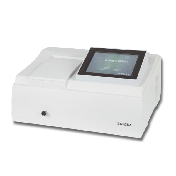 ,酶催化神經傳導代謝產物(乙酰膽堿)水解,其水解產物與顯色劑反應,產生黃色物質,用分光光度計測定412nm下吸光度隨時間的變化值,計算出抑制率,通過抑制率可以判斷出樣品中是否含有有機磷或氨基甲酸酯類農藥的殘留?梢詫崿F有機磷及氨基甲酸酯類農藥殘留量的現場快速檢測。